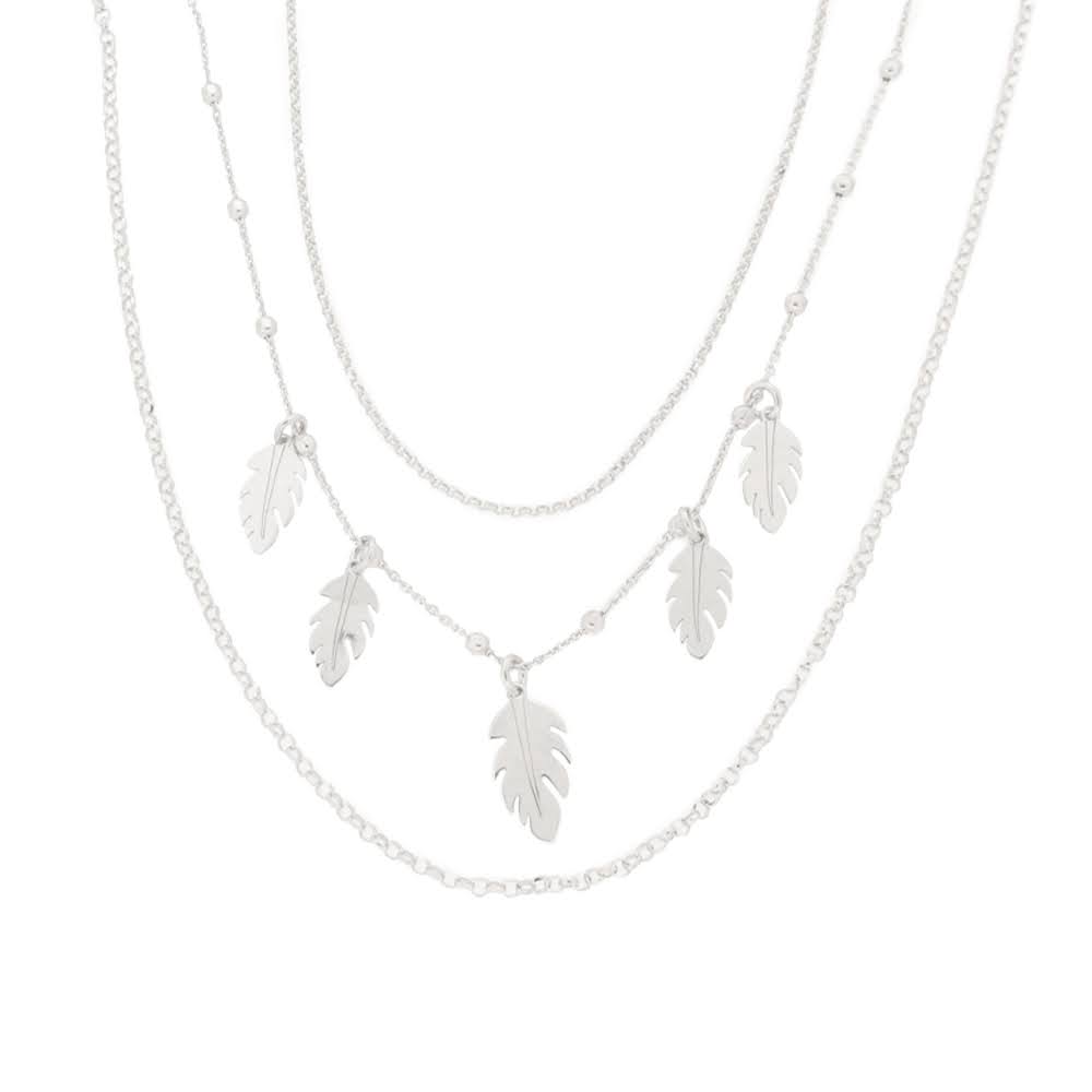 Rhodinert sølv collie 3-radig med 1r slipte kuler og 5 blanke fjær 45+3cm
