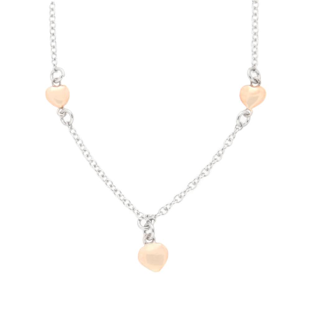 Rhodinert sølv collie med 3 rosé hjerter 14+2cm