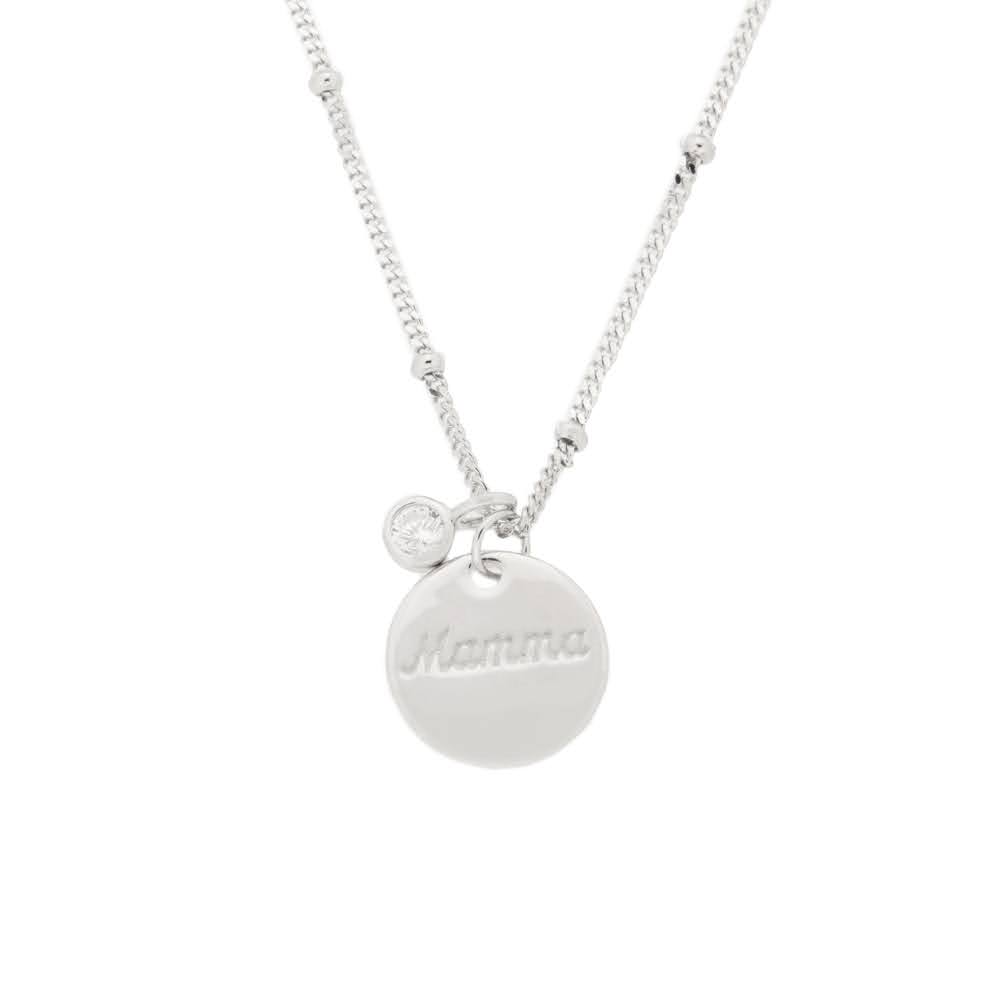 Rhodinert sølv halssmykke 12mm "Mamma" + liten blank zircon 42+5cm