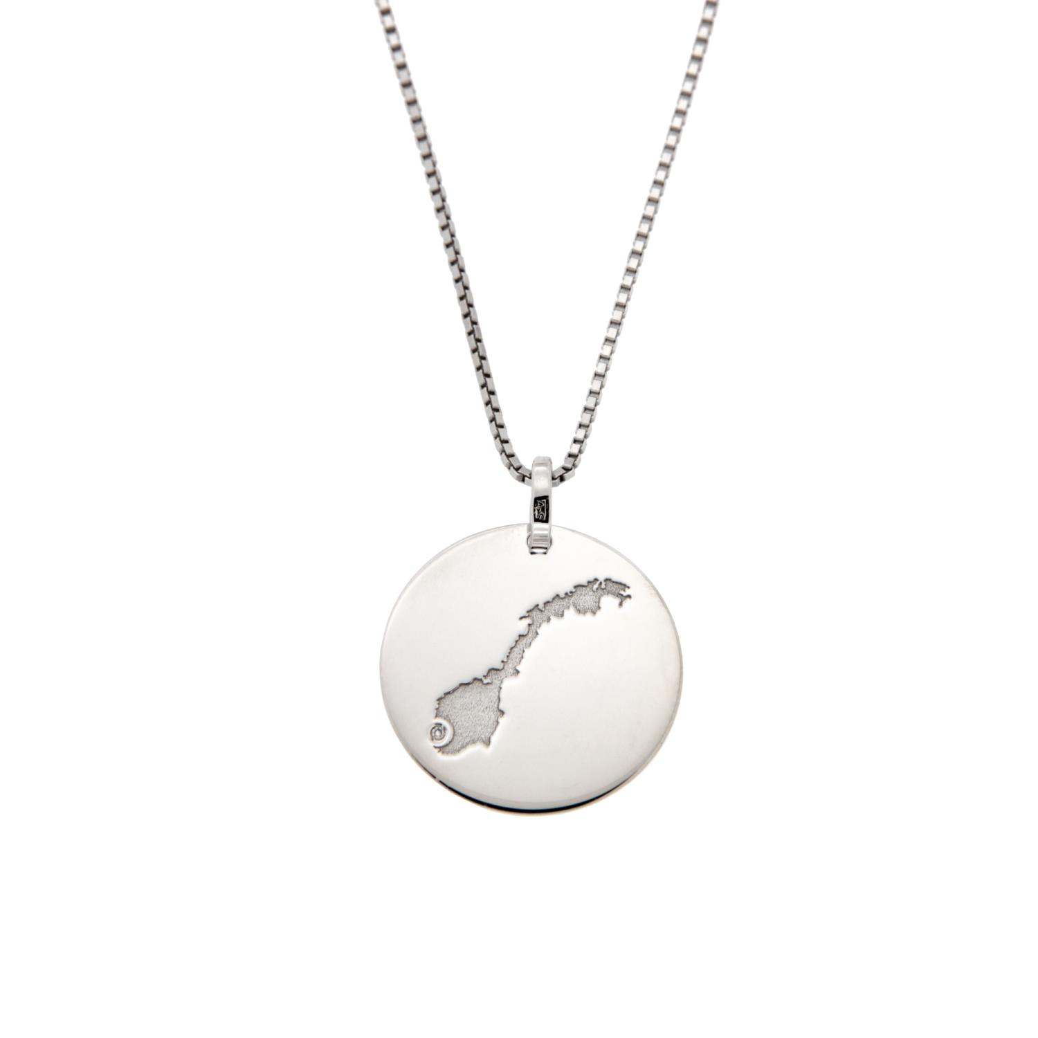 Rhodinert sølv halssmykke 20mm plate Stavanger/diamant