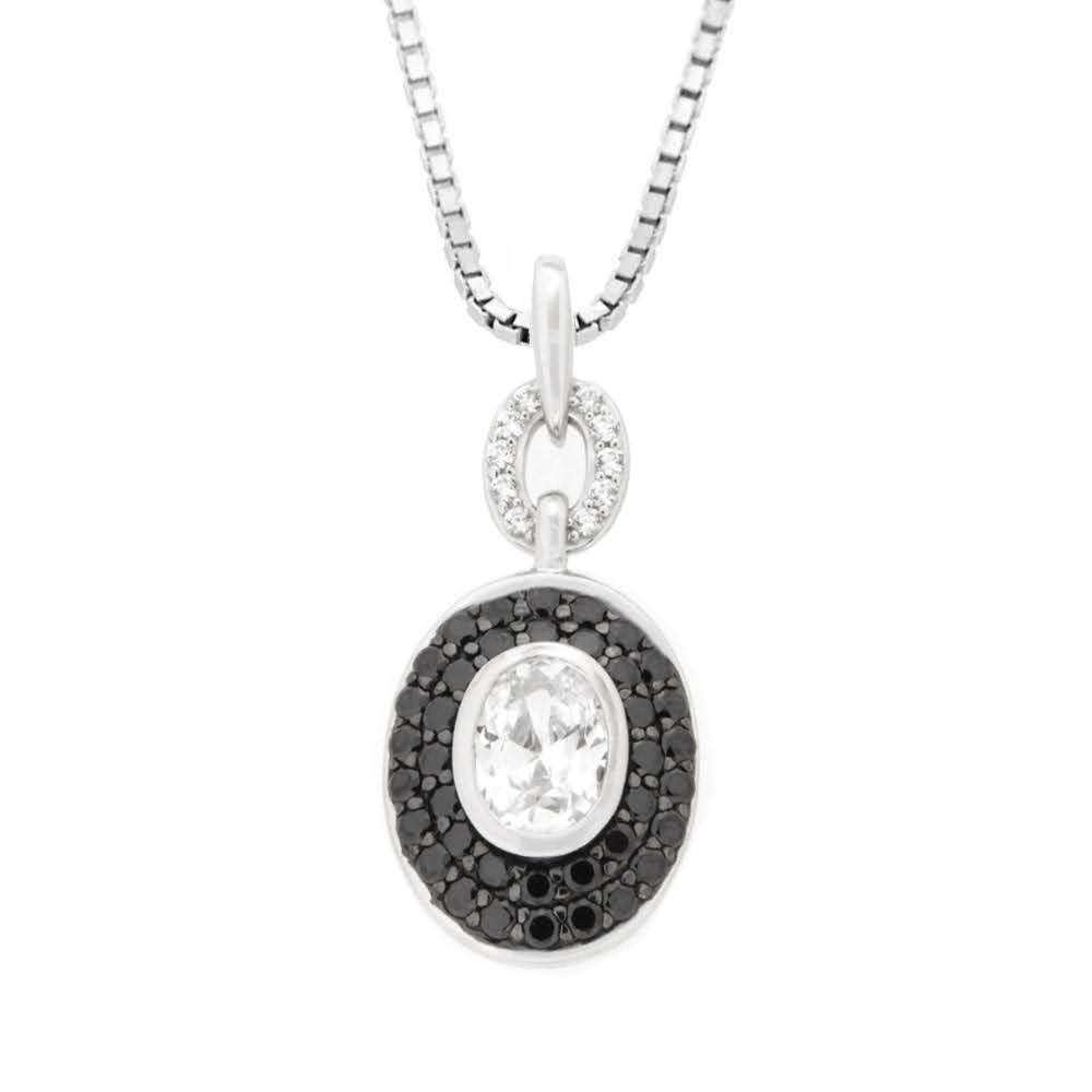 Rhodinert sølv halssmykke oval cubic zirconia med sorte zirconer 45cm