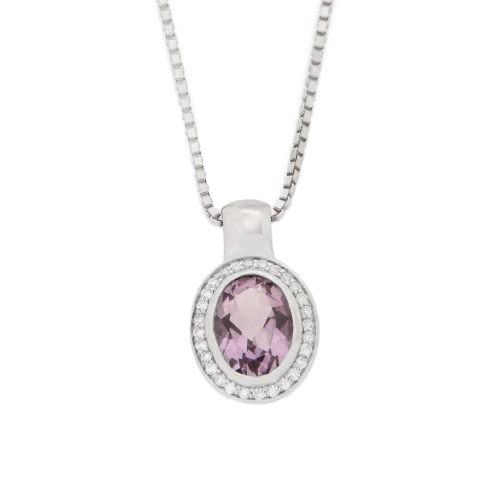 Rhodinert sølv halssmykke rosett med Cubic Zirconia & lilla sten 45cm