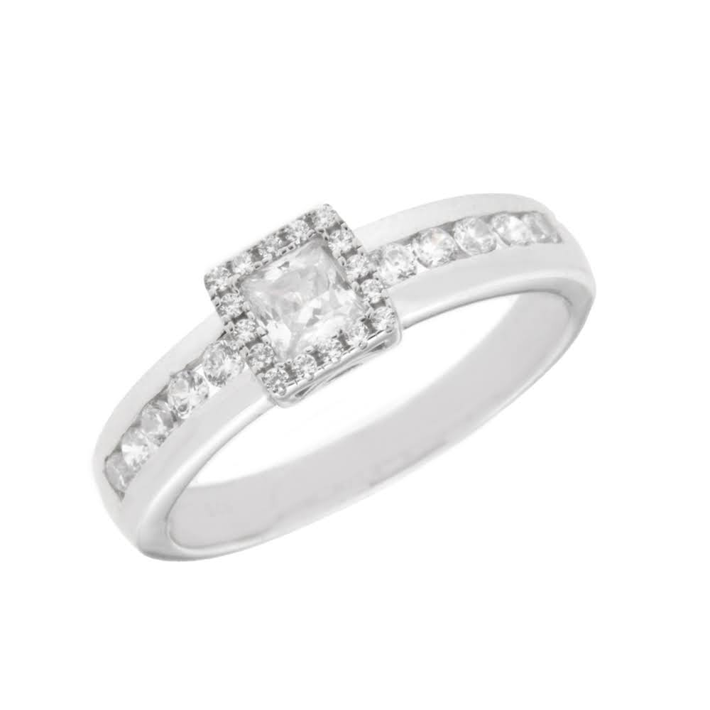Rhodinert sølv ring 6mm kvadrat med Cubic Zirconia