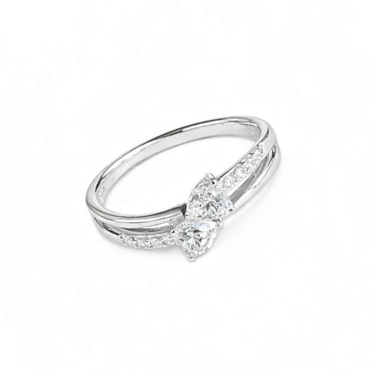 Rhodinert sølv ring hjerter med cubic zirconia