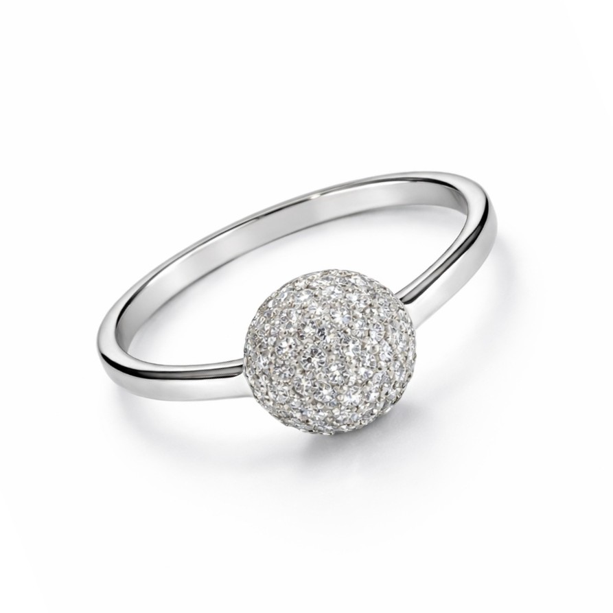 Rhodinert sølv ring kuppel med blanke zirconer 9.5mm