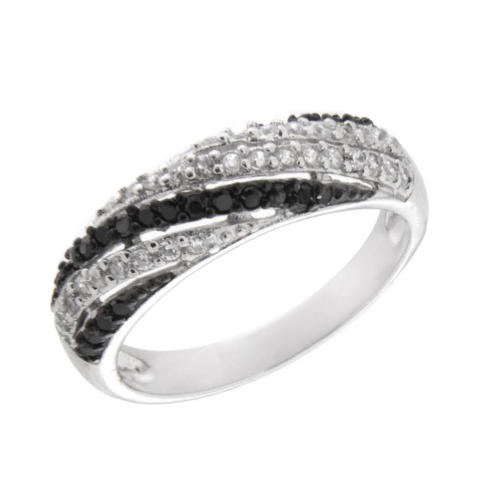 Rhodinert sølv ring med blanke og sorte zirconer