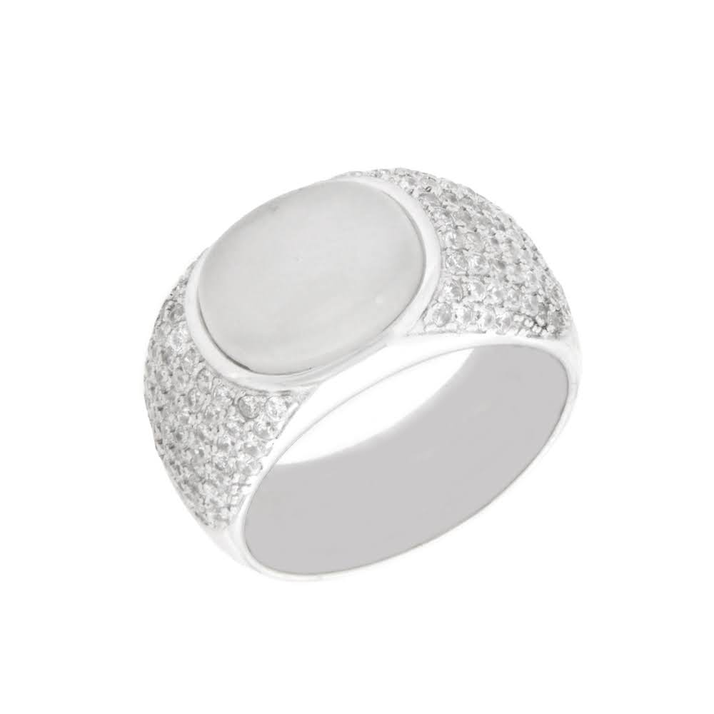 Rhodinert sølv ring med Cubic Zirconia og hvit månesten