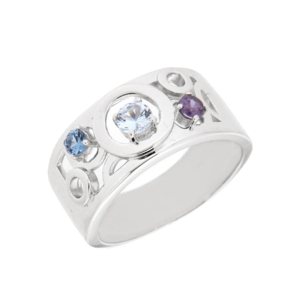 Rhodinert sølv ring med zirconer i lilla/blå/lys blå