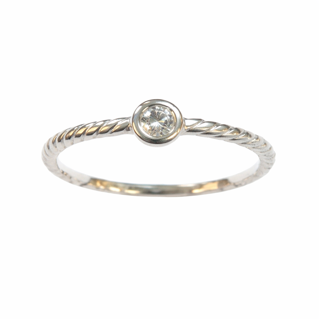 Rhodinert sølv ring vridd 1,6mm med Cubic Zirconia