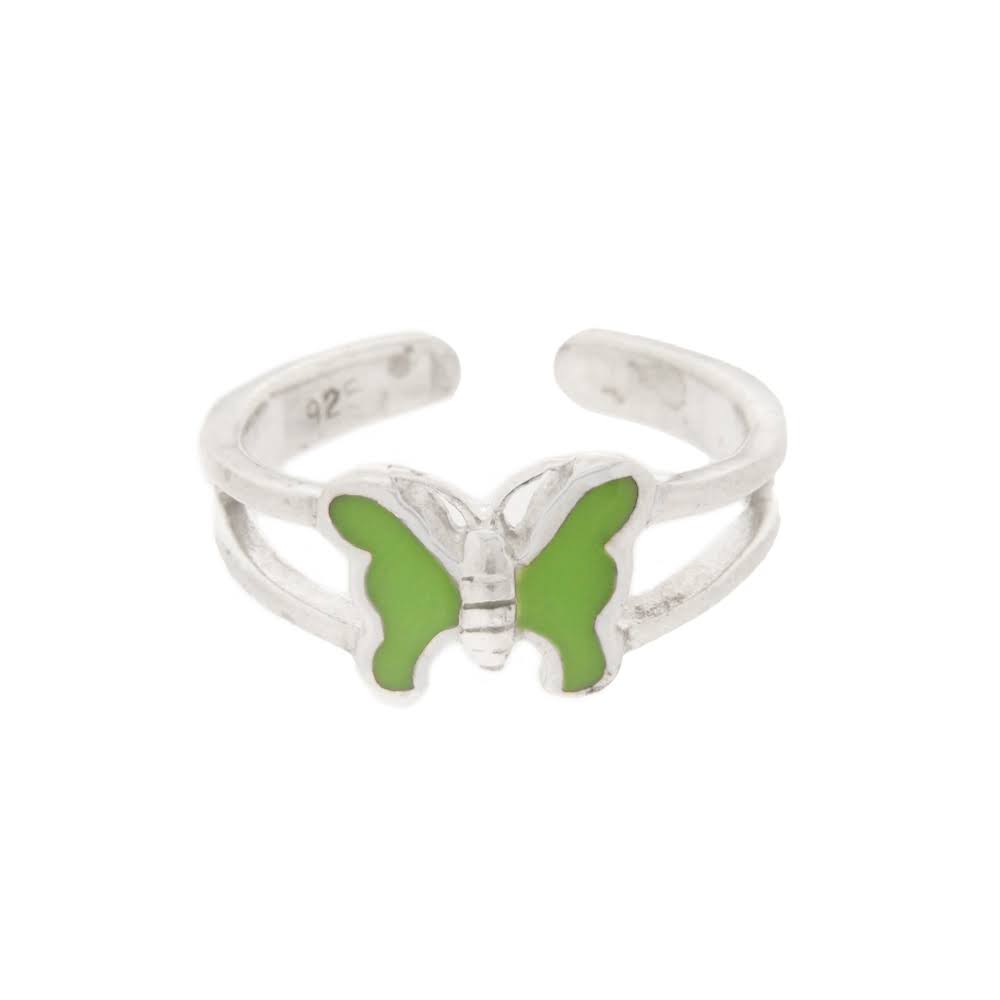 Ring sølv grønn sommerfugl 7x9mm justerbar