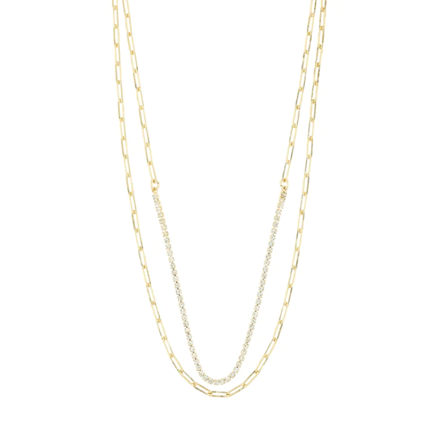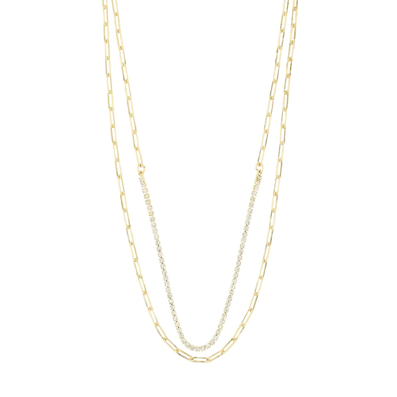 Trendy gullbelagt 2-i-1 halsskjede, med blanke krystaller.