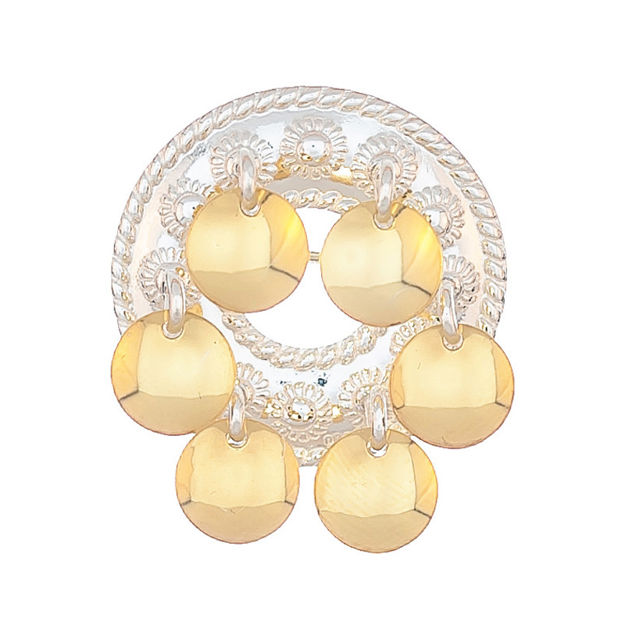 Liten barnesølje m/ 6 løv, hvitt og forgylt sølv. Størrelse: 2,5cm.
