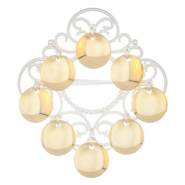 Sølje i hvitt og forgylt sølv. Diameter: 5,9cm.