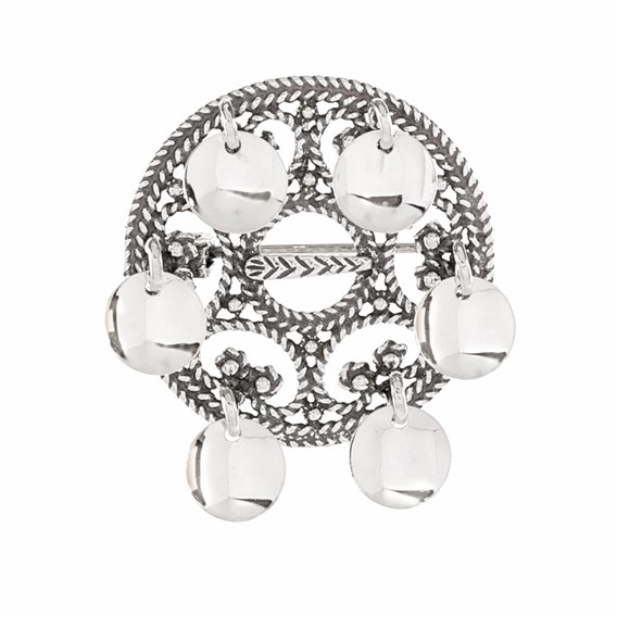 Sølje i oksidert sølv. Diameter: 2,9cm.