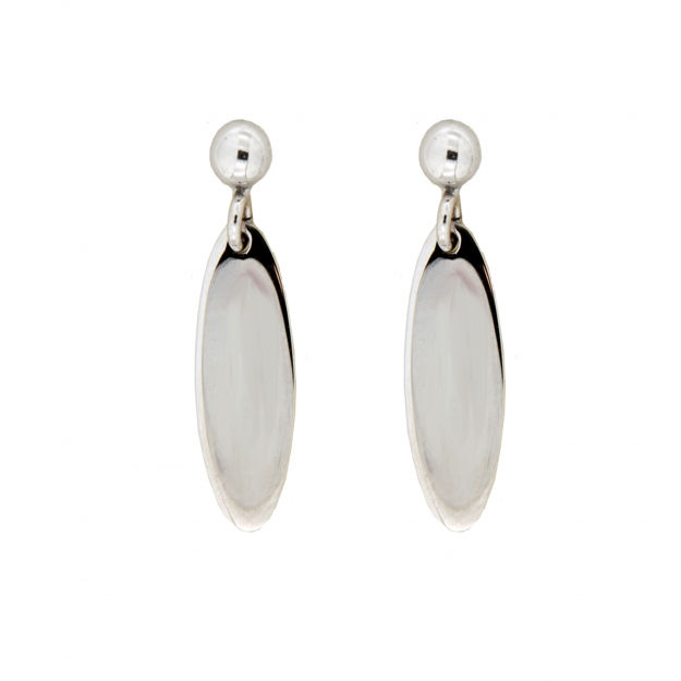 Vakre øredobber i sølv, med glatt overflate. Øredobbene består av en kule og en oval plate. Størrelse: 6,5mm x 18mm.