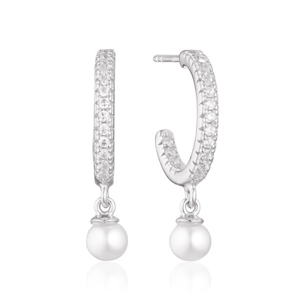 Vakre "Ellera Perla" øreringer i sølv, med ferskvannsperle og blanke cubic zirconia. Diameter: 15mm.