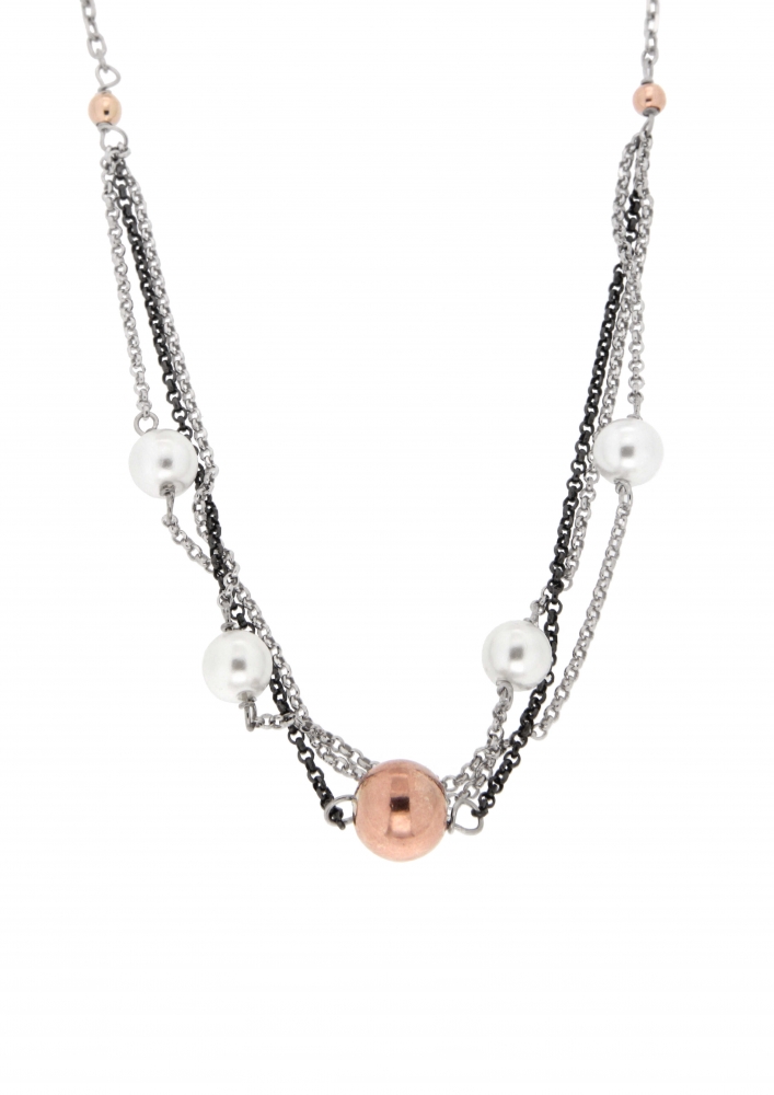 Vakkert halssmykke i sølv, med tre rader. Tynt ertekjede. Lengde: 42+3cm.