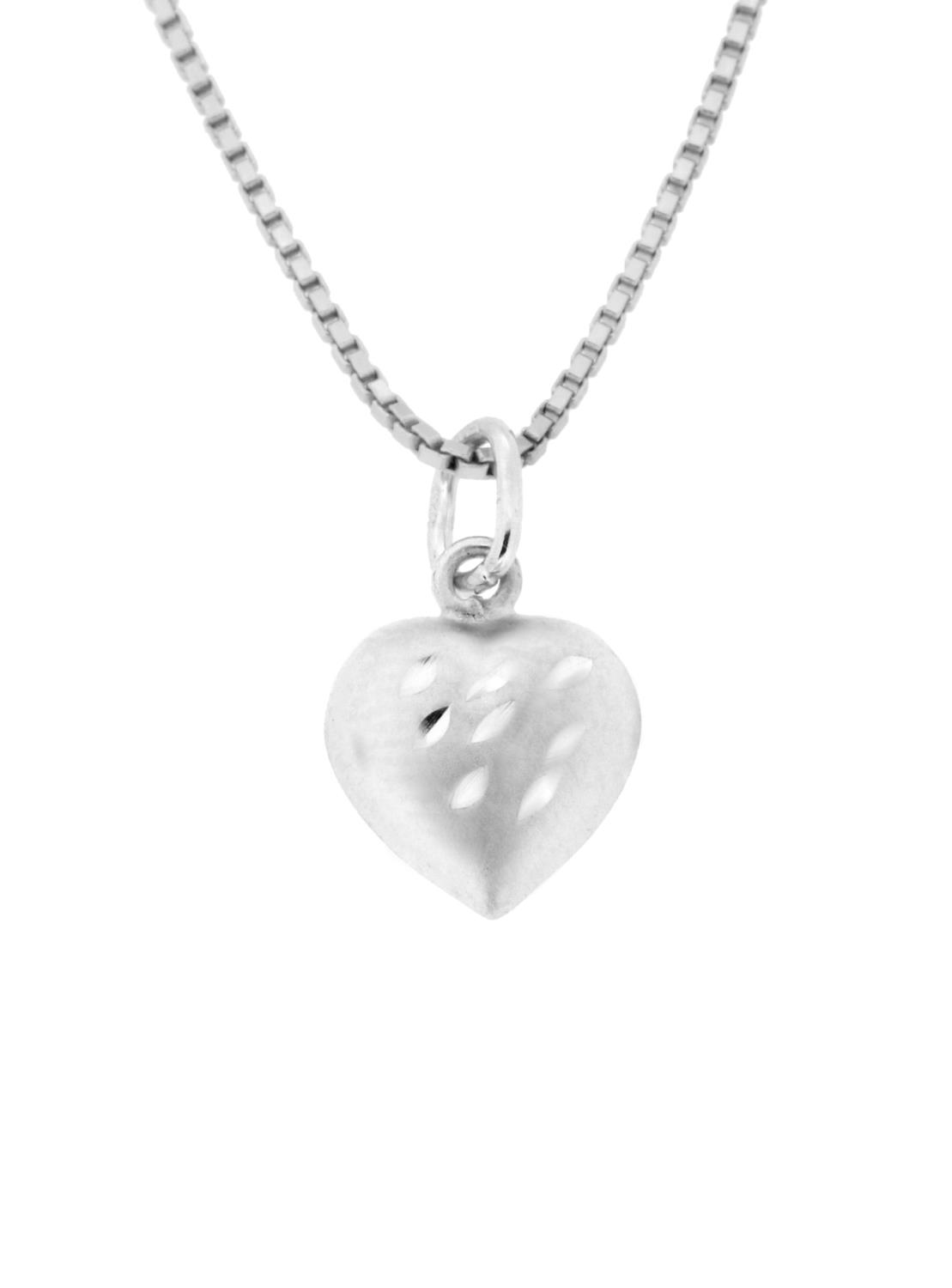 Skjønt halssmykke i sølv, med slipt hjerteanheng. Anhenget måler 11mm. Leveres med 36cm kjede.