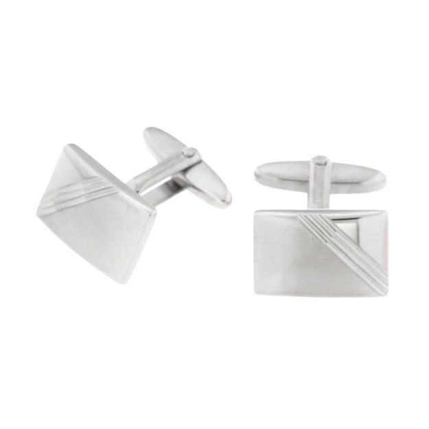 Stilige mansjettknapper i rhodinert sølv, med tre striper på overflaten.