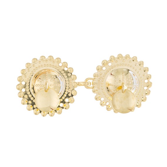 Spenne i forgylt sølv, med syhull. Lengde: 5,6cm.