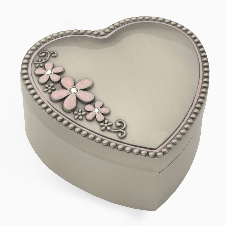 Smykkeskrin hjerte tinnfinnish rosa blomster 12,5cm