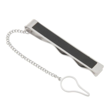 Stilig slipsnål i stål, med matt overflate og sort stripe.